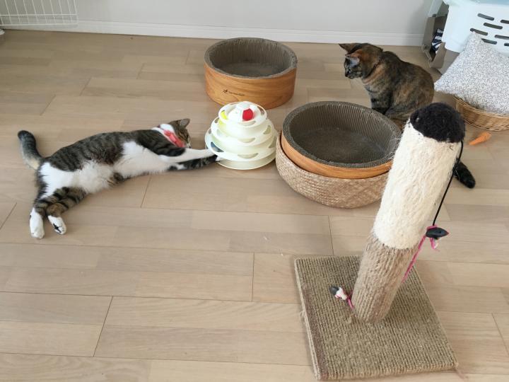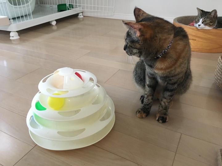 すごーく自分でも遊びたかったのに、ゆずたん優先してあげて、ポンズは優しいなぁ!遠慮がちで外から見守っているところが、なんとも奥ゆかしい。