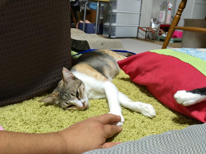 ミケちゃんは怖がりだからか、はたまたタローが独占しているかで