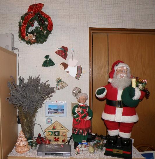 <玄関です。今年は、サンタにしました。なんか、ゴチャゴチャですね~。>