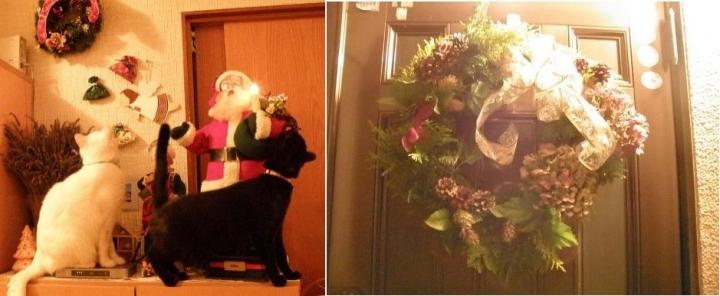 お手伝いのつもりかしら、興奮気味の2匹を余所に、飾りつけは進みます。