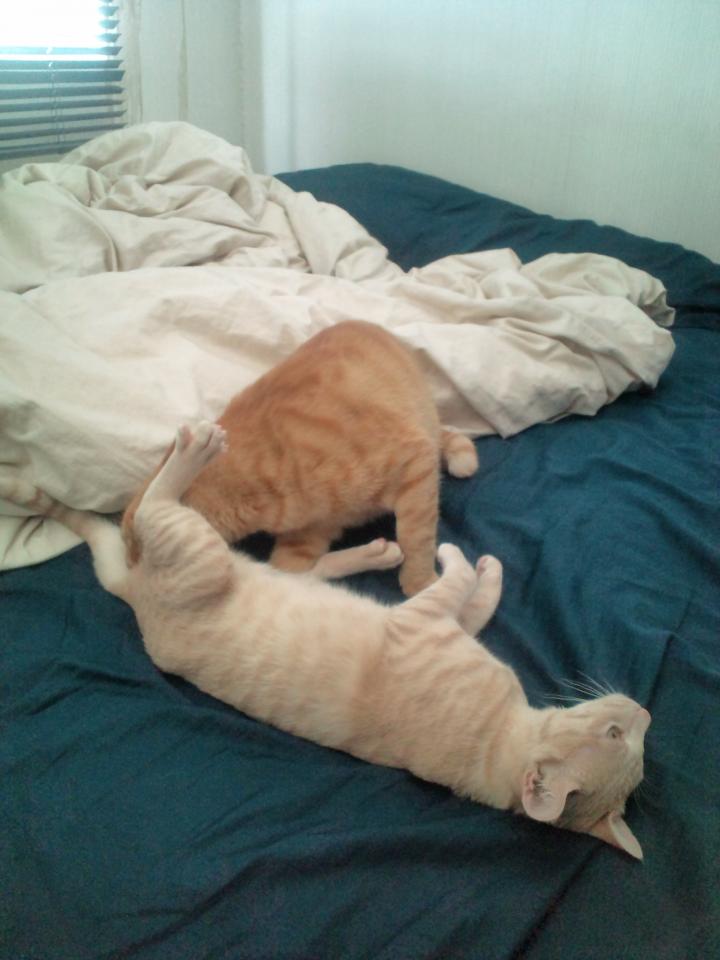 母曰く、もみじときなこも昼間はソファーの上で一緒に寝たりしてるらしいです。