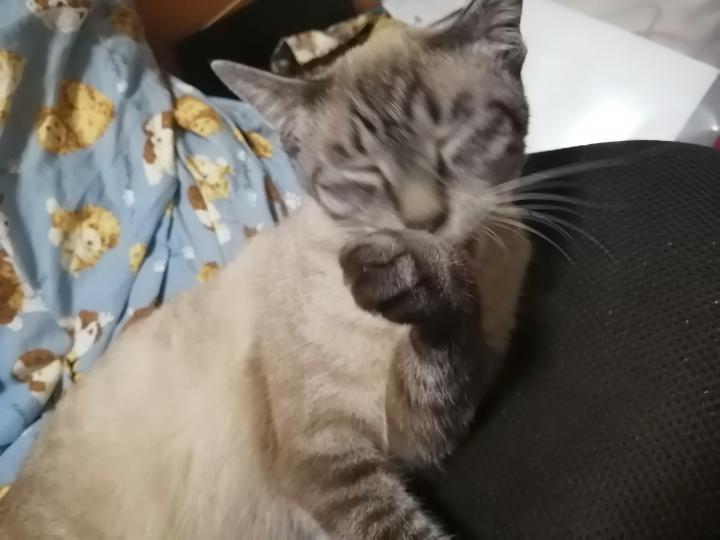 これは昨日の夜、座椅子奪って毛づくろいはじめた顔(笑)