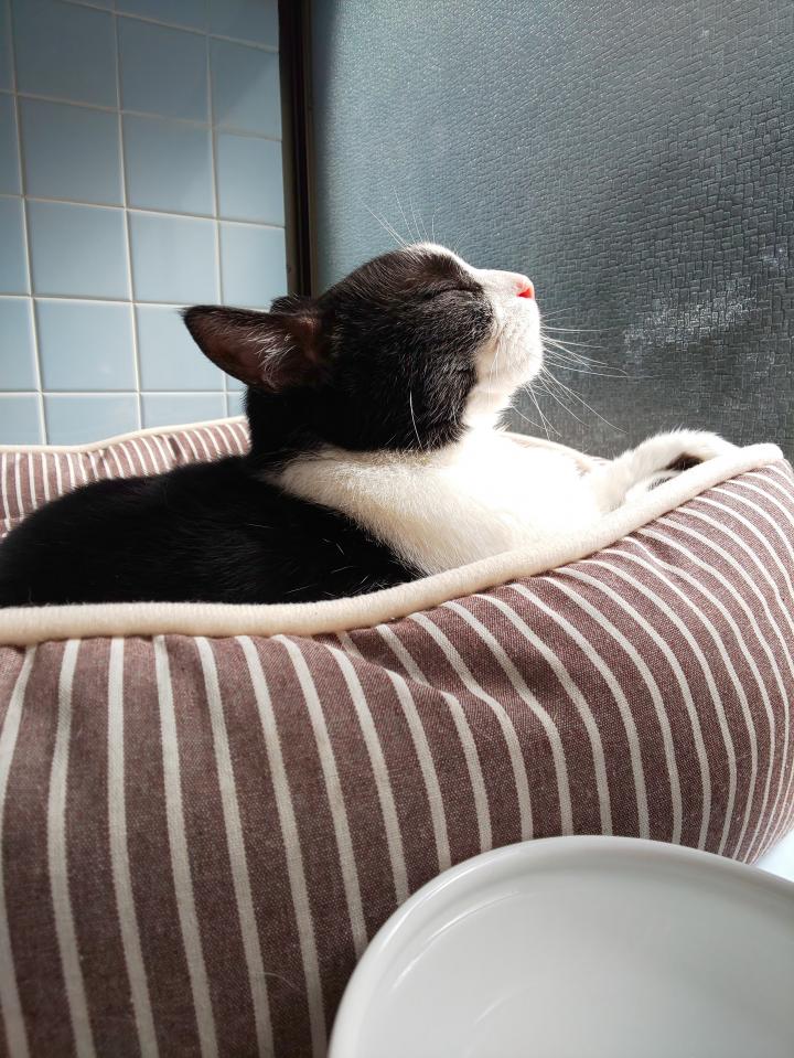 うちの福にゃんは午前の日向ぼっこスポットでポカポカに