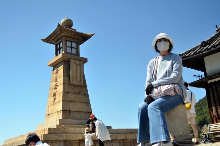 【常夜燈の前で、記念写真をパチリ】
