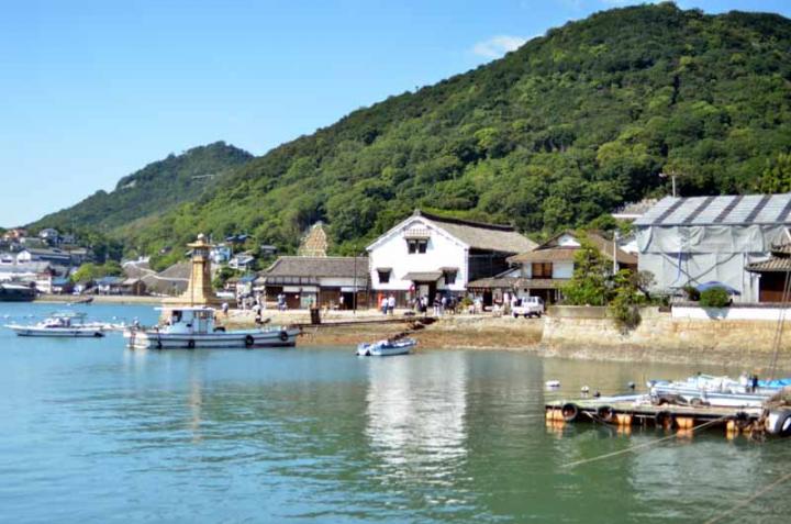 左側の岸壁の先端にあるのが常夜燈、鞆の浦1番のシンボルですね。