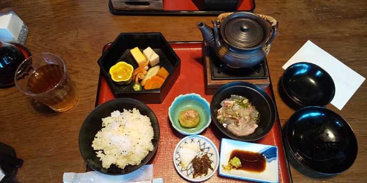ご飯を1/3ほど残して、鯛のお刺身を上に乗せて、土瓶に入った熱い出汁をかけて、お茶漬け感覚で頂きます。