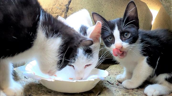 【野良猫】捨てられ震えてボロボロでしたがご飯をいっぱい食べました 捕獲保護にトライしてます
