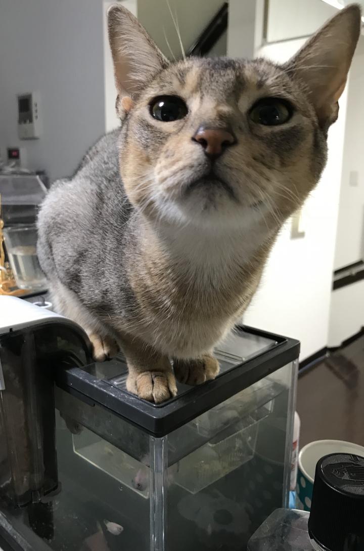 ビビは🐠みんなの名前を覚えようと最近頻繁に水槽に登ります😸