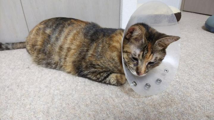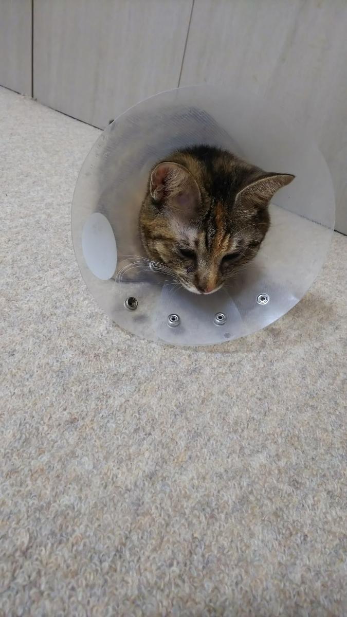 エリザベスカラーしたまま、大丈夫かな?と心配でしたが、慣れてきたみたいです。昨晩はキャットタワーの上まで登ってました。