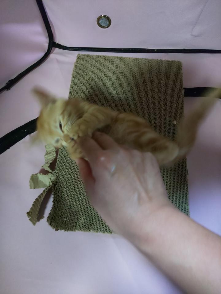 除菌してる間、ヨッちゃんと猫じゃらしで遊びます