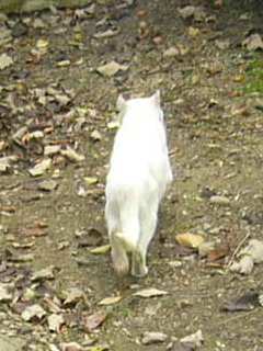 朝方庭を見てたら白い猫がこちらに歩いてくるのが見えました