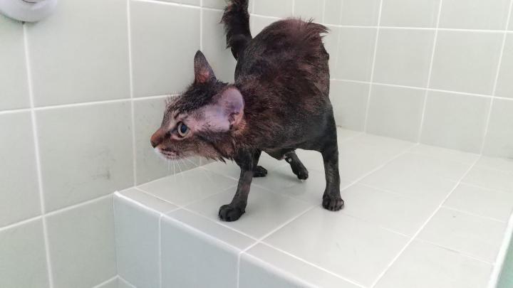 完全室内飼いのキジトラ猫は洗っても見た目は変わりませんが、