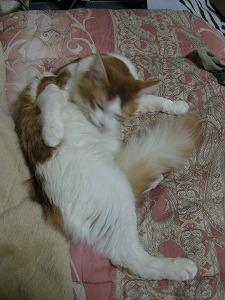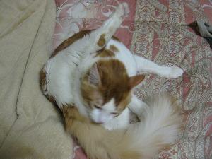 毛づくろい中なぜかよく尻尾がおなからへんに丸まってますwびびってるわけでもないのですが、笑えますw