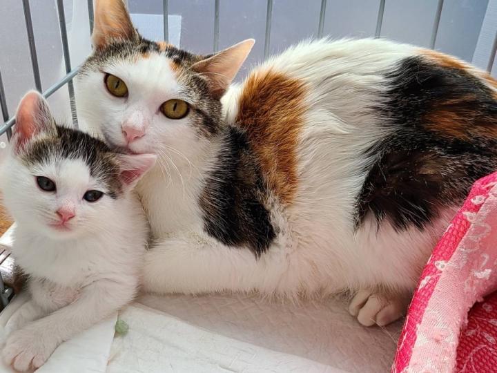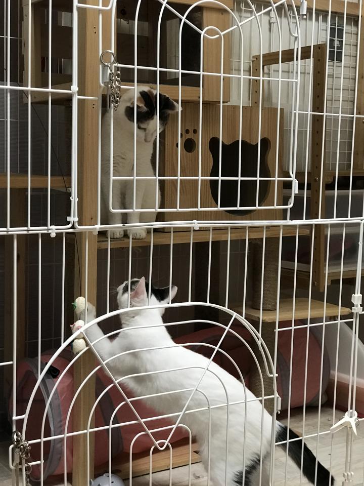 その後一緒の猫小屋で離れて過ごし、ママは何度か近づこうと試みますが、こねねの冷たい視線に断念!