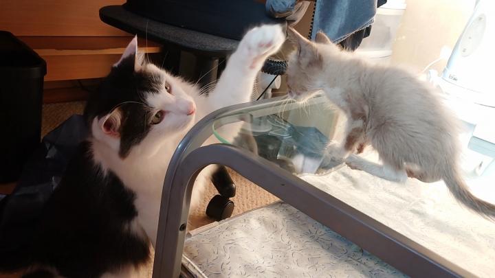 ただ、ほづみの方はまったく負ける気が無いようで、猫パンチも受けず、匂いも嗅がせず(^_^;)