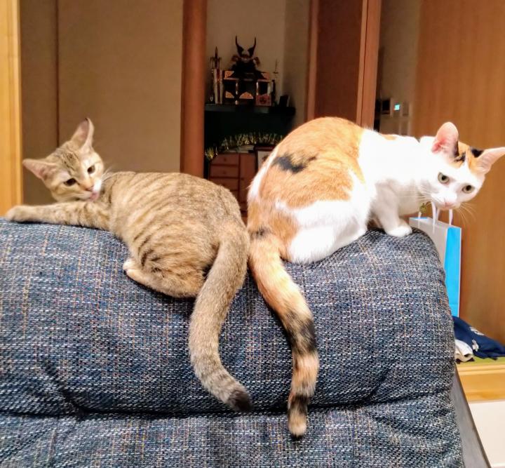2匹目がやって来て、それぞれの性格の違いや毛の手触りの違いなどを楽しんでいます。