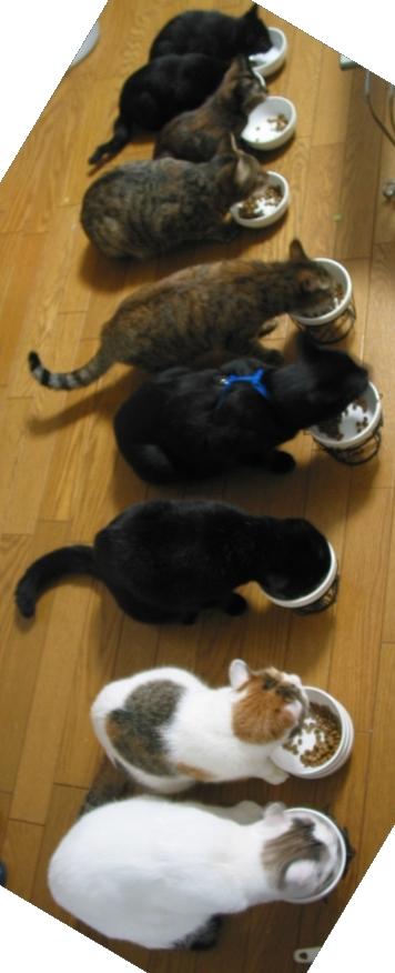 そんなわけで、猫たちの食事風景でございます。(大家族で晒し済み)
