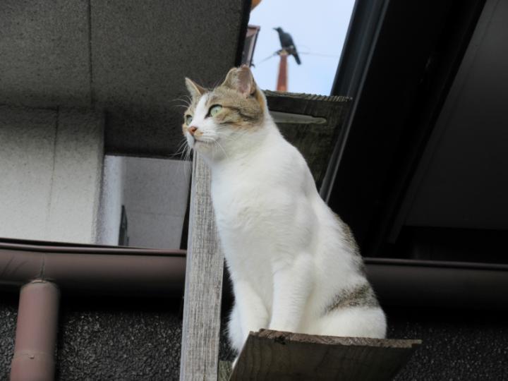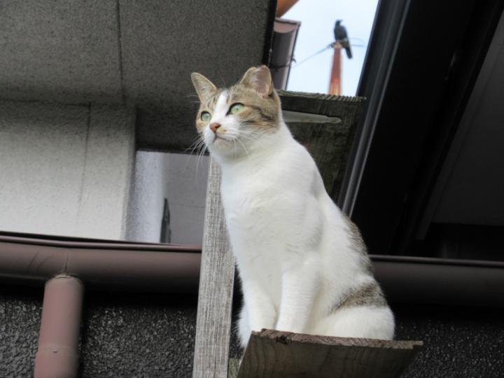 偶然背後の電柱?にカラスが止まっています カラスもないていたかも