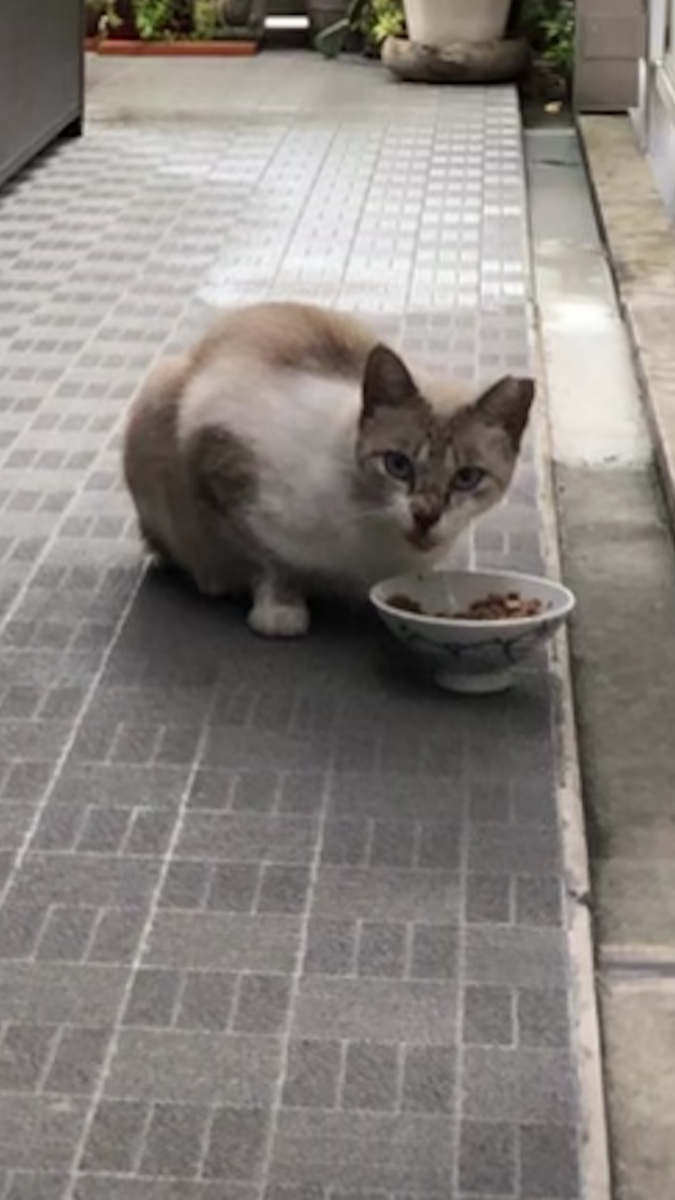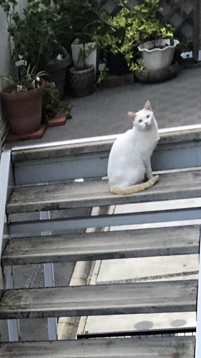 桜耳🌸先輩のししがみちゃんとイケメン白ベージュくんはだいぶ慣れて階段上でご飯食べれるようになりましたがキジトラくん🐅は階段下で早よくれー!!オーラ満載です。(笑)