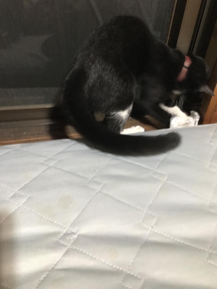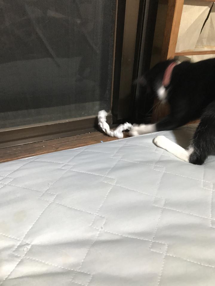 ねえねの袋から、レシート🧾2枚しのぶ様が発見❗️丸めて2個放ったらもう気が狂ったようにレシートを追う追う❗️で丸みが無くなるとママの側にポトンと置く、で投げると、追うの、繰り返し😅