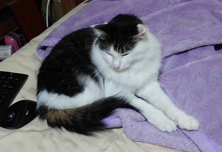 散々怒られてなごみさんは旦那の毛布の上に避難。