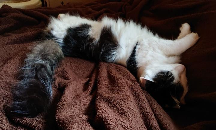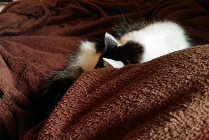 なごみは案の定、午前中はケージがあった場所に匂いつけの如くうずくまり、午後になってやっと布団の上にやってきました。