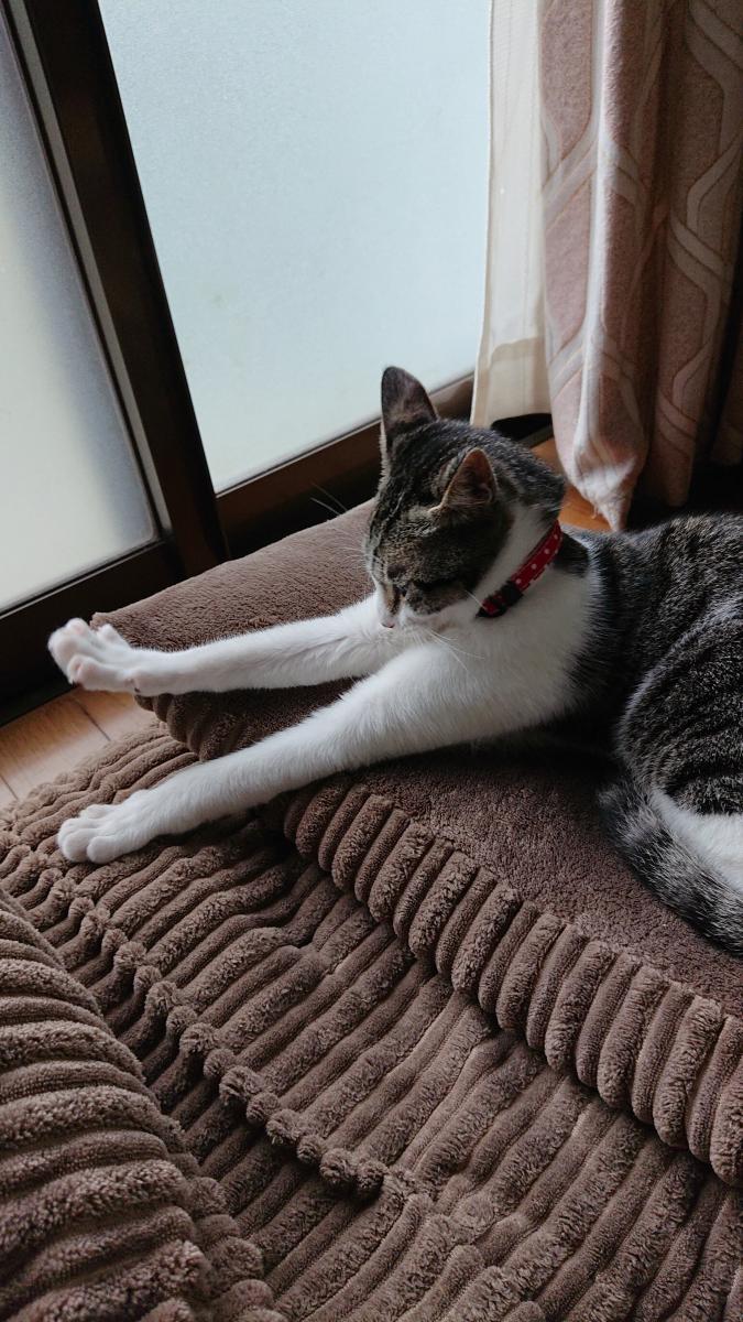 リンちゃんは新しいお気に入りの場所を見つけたようだ。だんだん寒くなって来てふかふかの座布団の上から離れたくないリンちゃんでした。