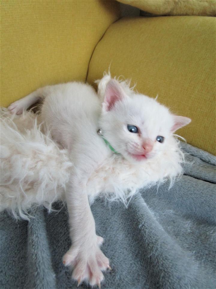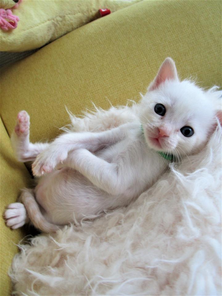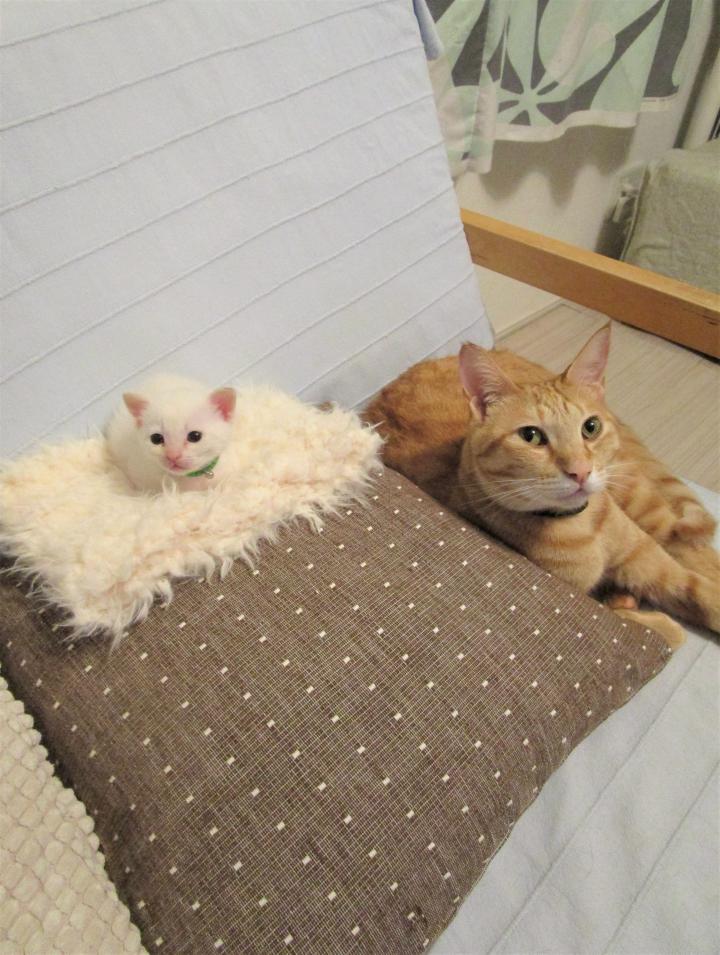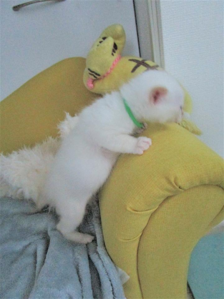 夜、人間のソファにもでびゅーちまちたよ。 兄たん、ちょっとごめんにゃちゃいよ。