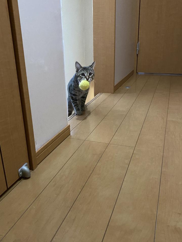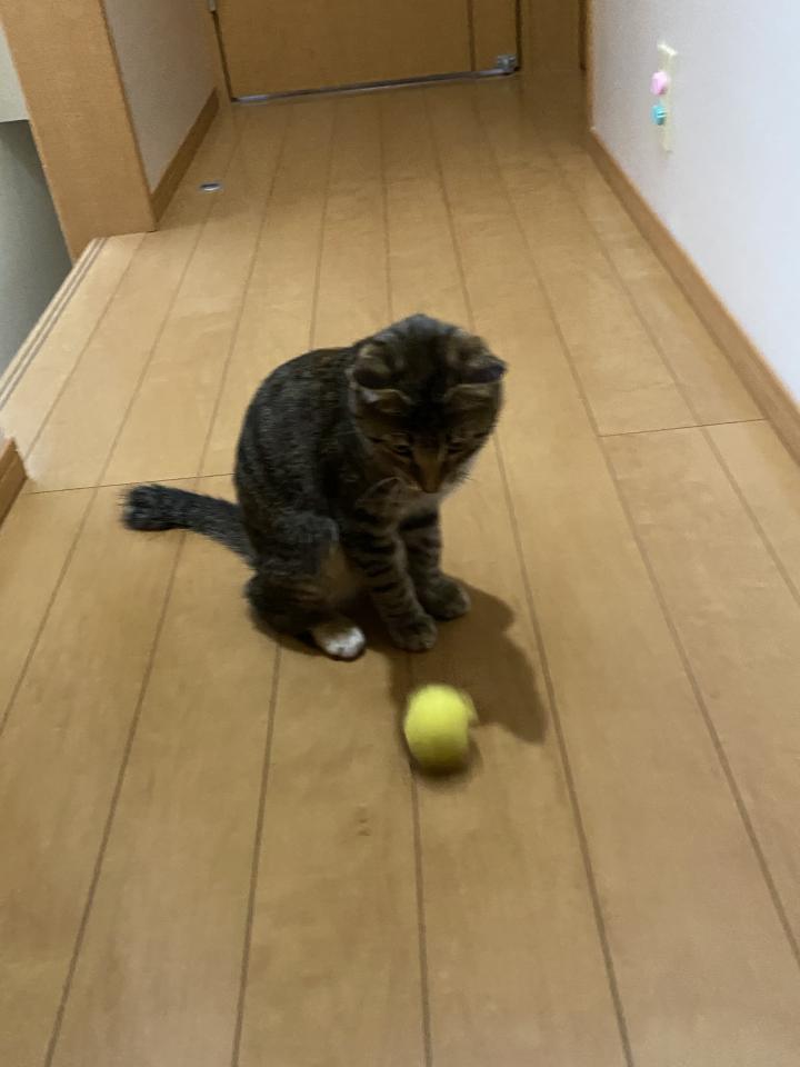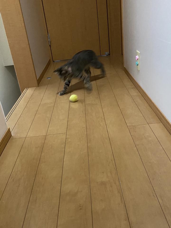 ひとりサッカーが始まります。前足で上手にボールを転がし、結構な速度でドリブルをしているのには驚きました👀