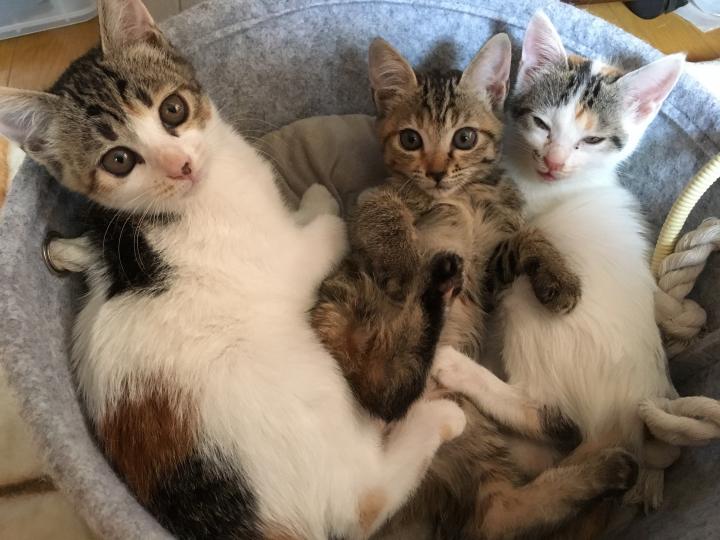 保護当時は3匹入ってももう少し余裕があったのですが、大きくなったので大渋滞してます。