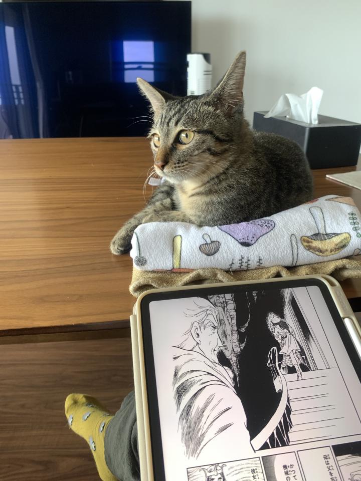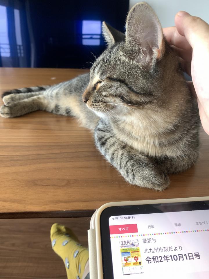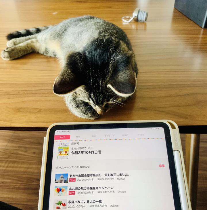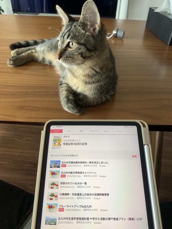 「新聞を読んでるとジャマする」のと同じで、iPadに集中してるとやたらと甘えてきますw