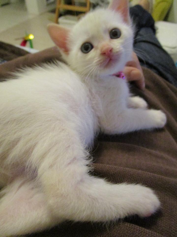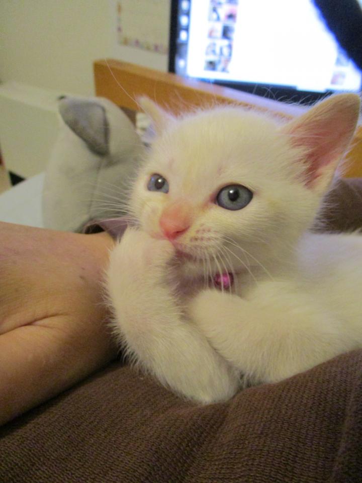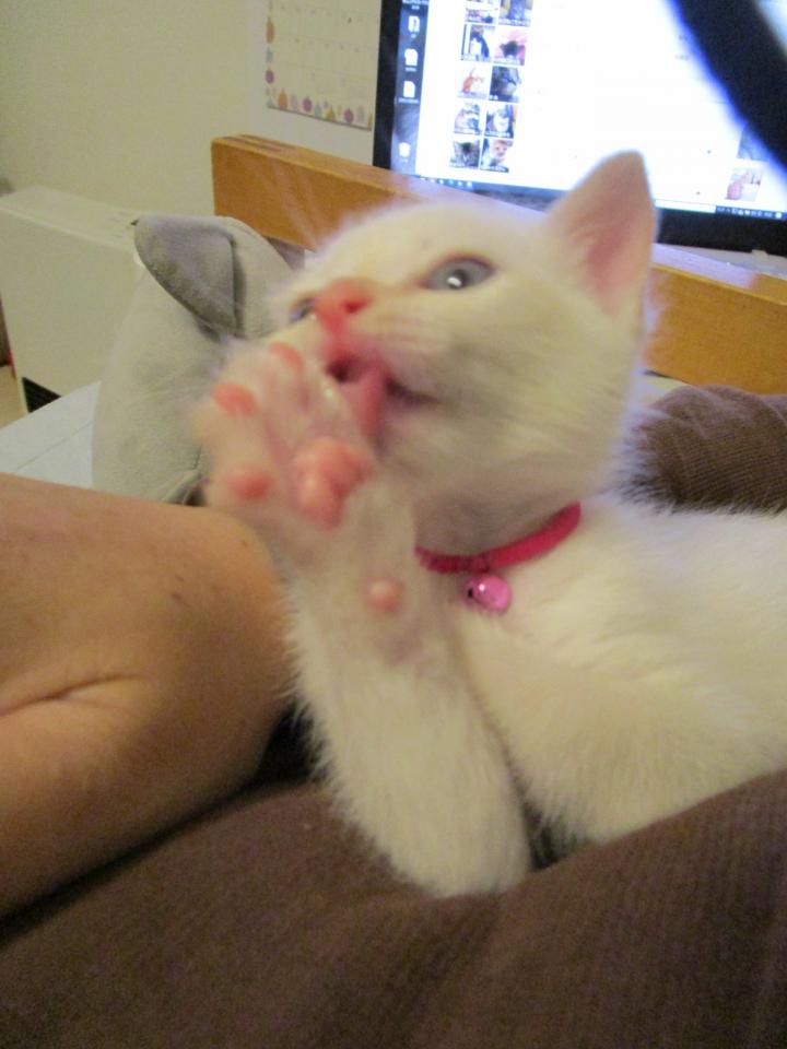 あたちは、ニンゲンのそふぁに登れるよーになりまちたよ。