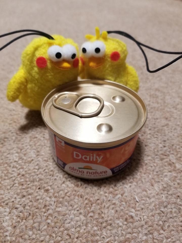 同じデイリーメニューラビットでも、400グラムと100グラムは何かが違うらしく、食べません。85グラム缶だけ、何故か食べてくれはるんです。