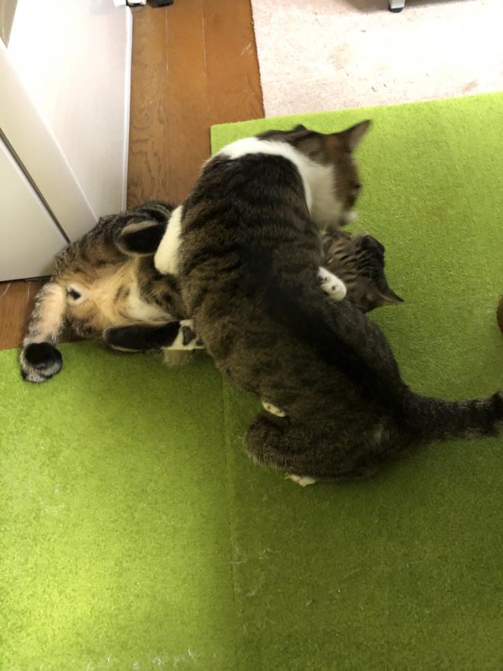 もっぱらはじめに飛びかかっていくのは大福。セナが近くを通りかかった時に背中にガシッと掴みかかる。