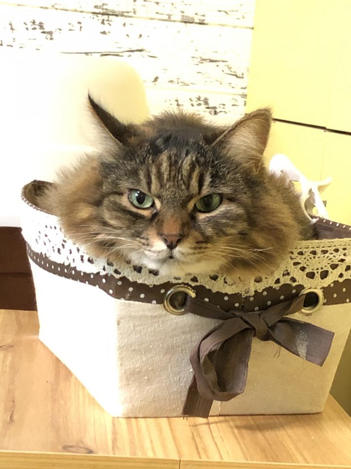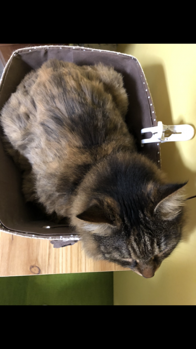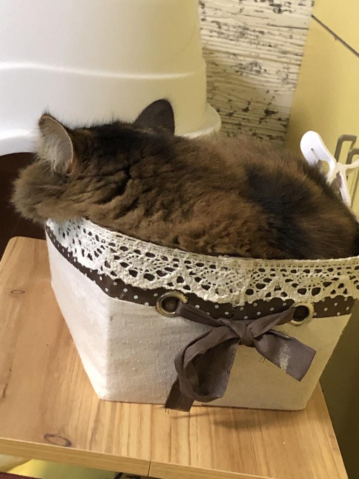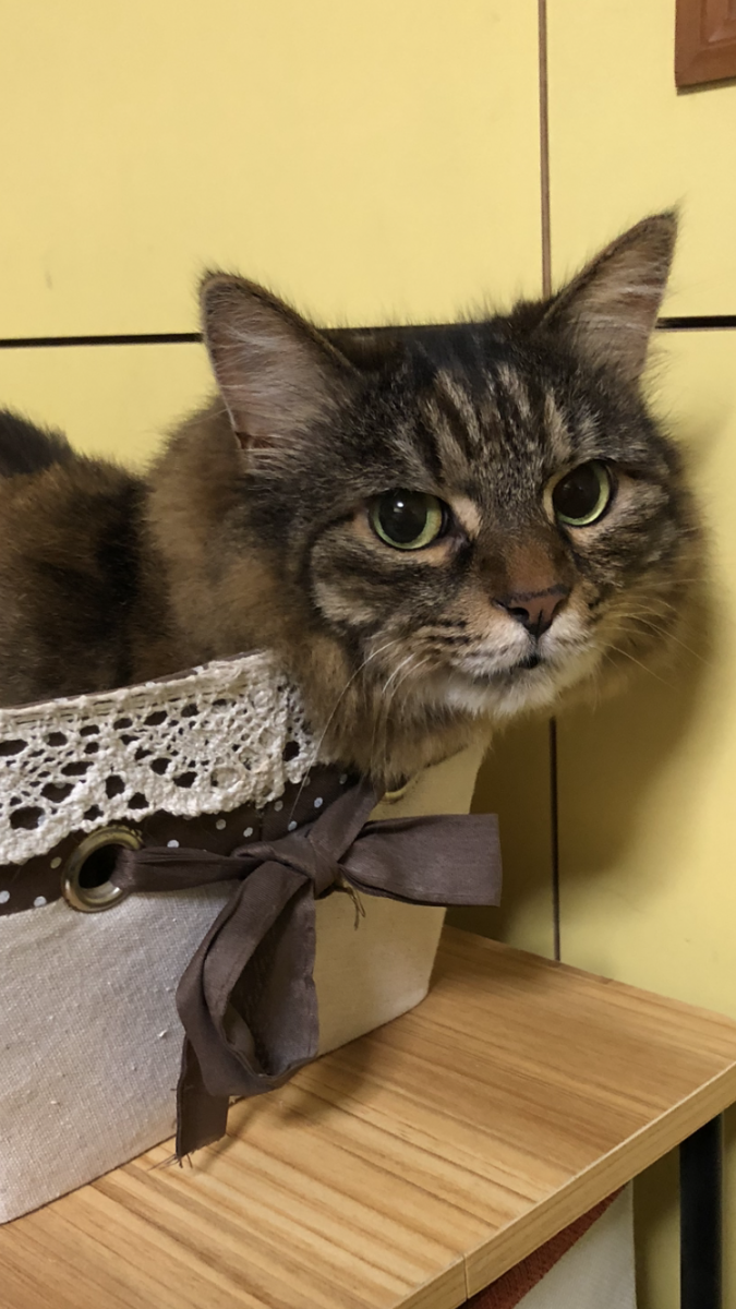 モコと共にご飯を食べて、キッチンから私が動き出すまでは、右横に置いてある小さな箱に入って、じーっと見つめられています。