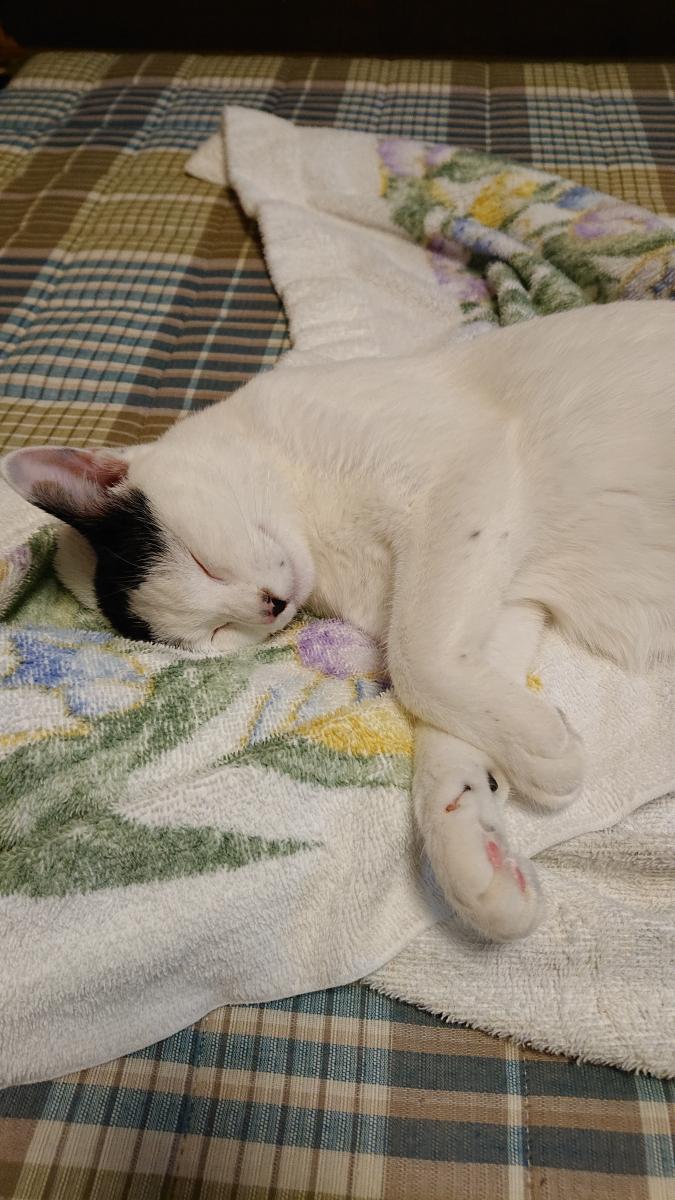 ステロイドが効いて、顔回りをほとんど掻かなくなった。右頬の禿げた所もめだたなくなってきている。