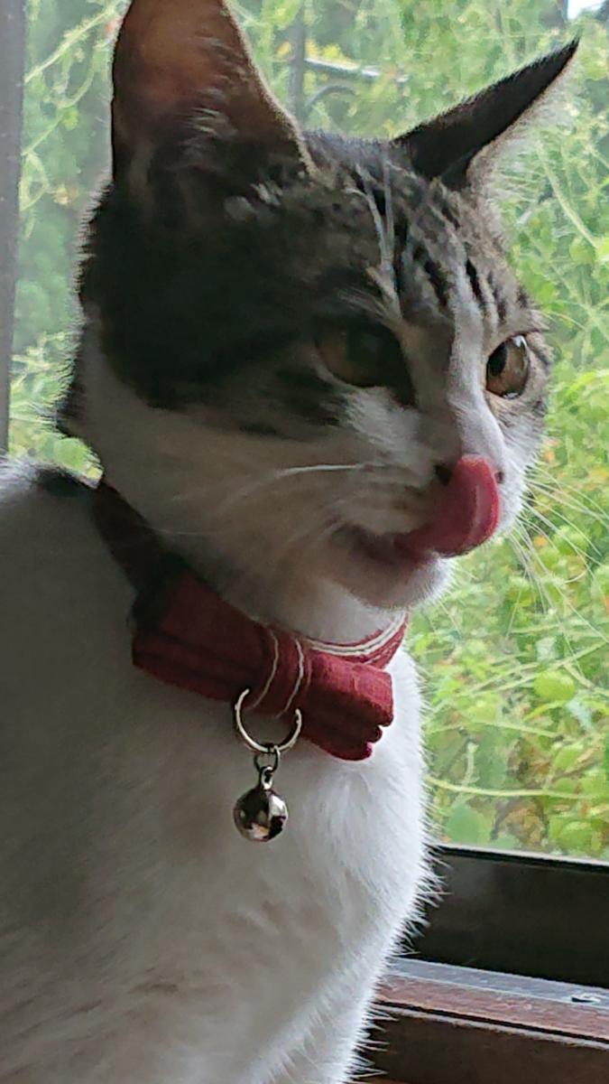 5月15日(木)曇り 今日は天気が悪くなるのだろうか。 少し前まで日がさしていたのだが。 いつものとおり、狭いサッシの隙間から外の様子をうかがうリンちゃんでした。