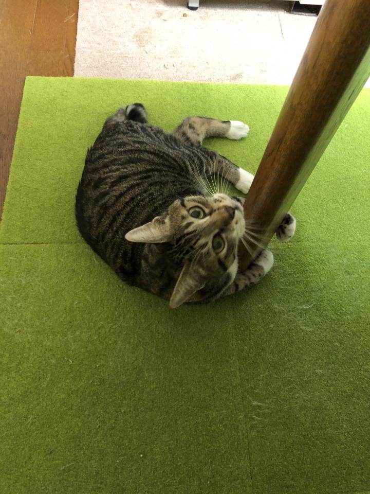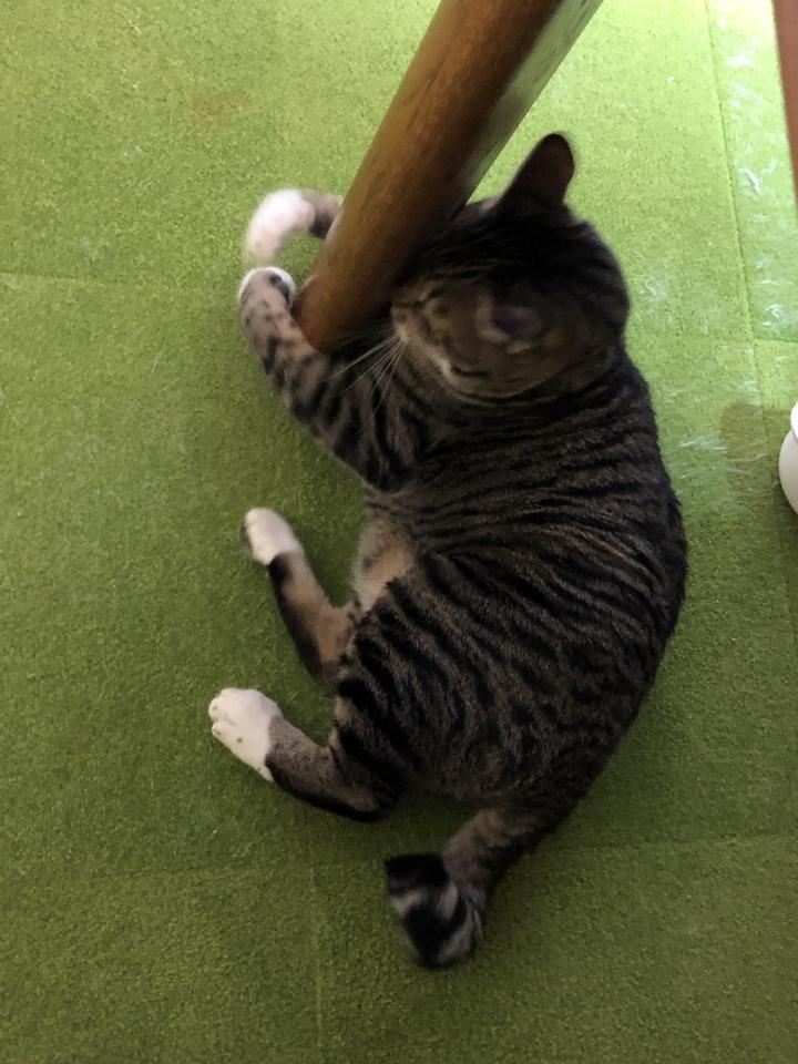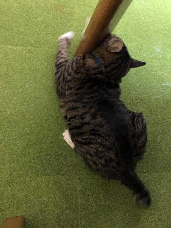 ここ数日、セナがテーブルの脚にカリカリと絡む事があります。遊びたいのか?何かストレスがあるのか?お腹空いているのか?他の猫に対する何か訴えたい事があるのか?不明行動です。