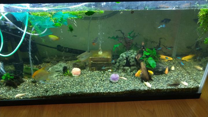 上部式+外部式でセットしました。これで濾過機能は大丈夫♥️一応ブクブクも投入。バブルカーテンもつけて酸素供給量アップ‼️