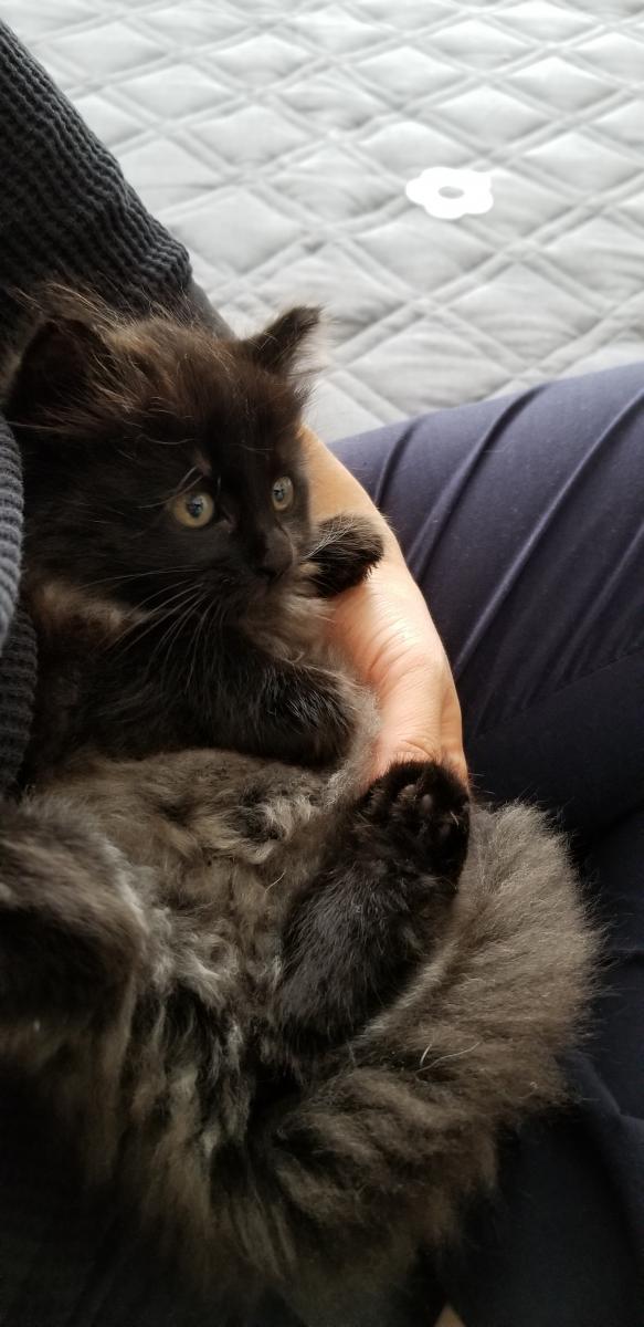 威嚇するけど抱っこしたら落ち着いた黒モフちゃん☆すごーく小さくてかわいかった~!