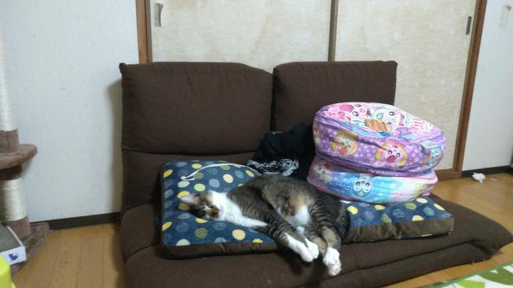 限界まで伸びて寝てます💦余計疲れないの?