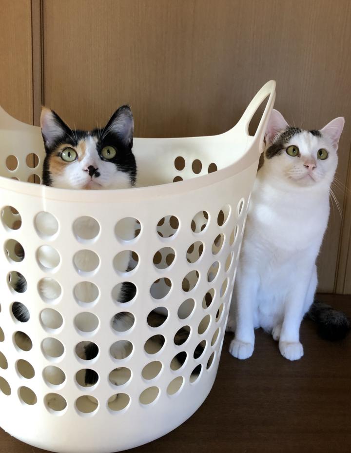 洗濯カゴの中に入っている「布を食べ過ぎ王」のココ♀。