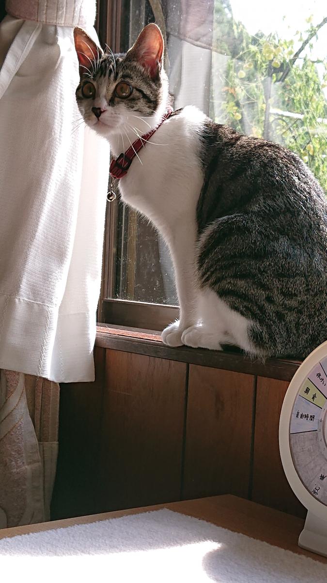 5月8日(木) リンちゃんはカメラ向けると殺気を感じるのかいなくなってしまう。 今日も朝食の後カーテンの向こうでコロコロしていたのに殺気を感じて避難したリンちゃんでした。