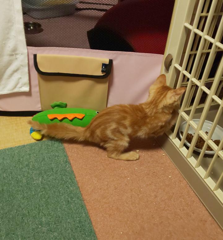 クロム君達のカリカリに興味津々