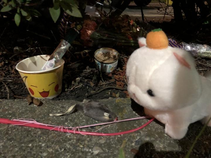 今から白ネコさんの供養に行こうとしているこのタイミングで、交通事故で亡くなった白ネコさんと同じく交通事故で亡くなったワンワン…