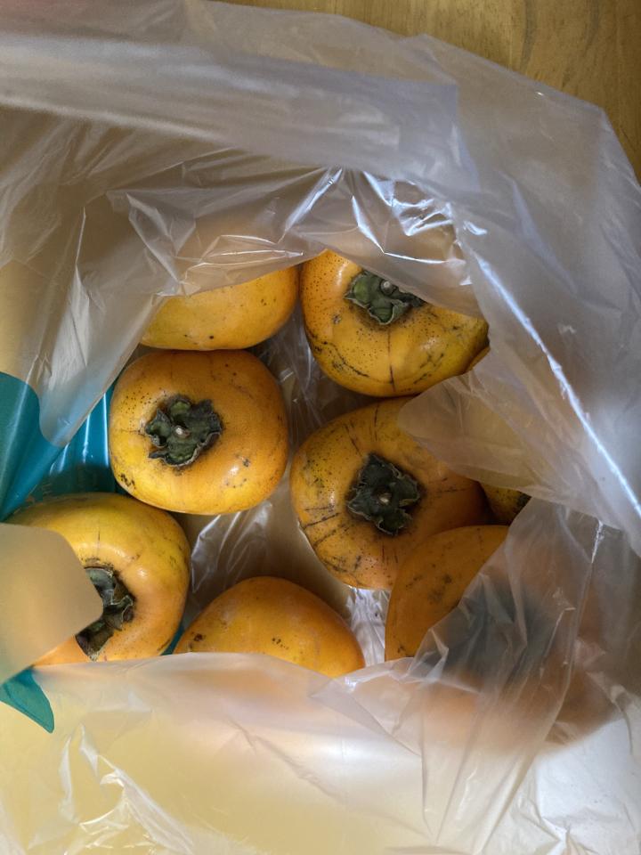 渋柿のヘタに焼酎をちょっとつけてビニール袋とかで密封して渋抜きするんです。