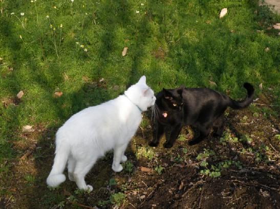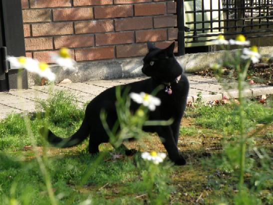 土曜日、庭仕事をしている夫に、ニャンズ達も付いて歩いていました。