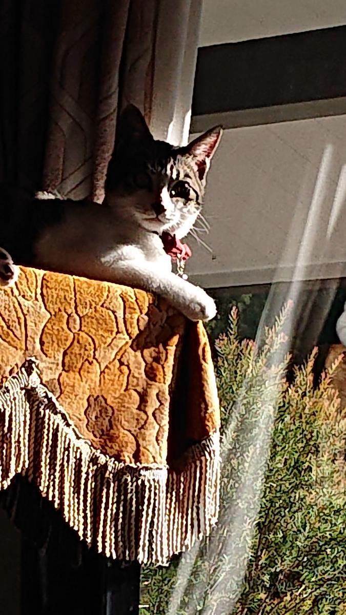 5月8日(木) リンちゃんはカメラ向けると殺気を感じるのかいなくなってしまう。 今日も朝食の後カーテンの向こうでコロコロしていたのに殺気を感じて避難したリンちゃんでした。