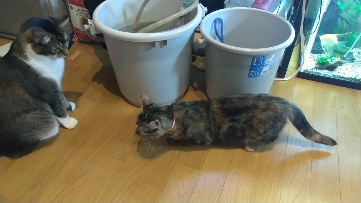 水換え中、姉弟仲良くバケツの中身を眺めてます✨