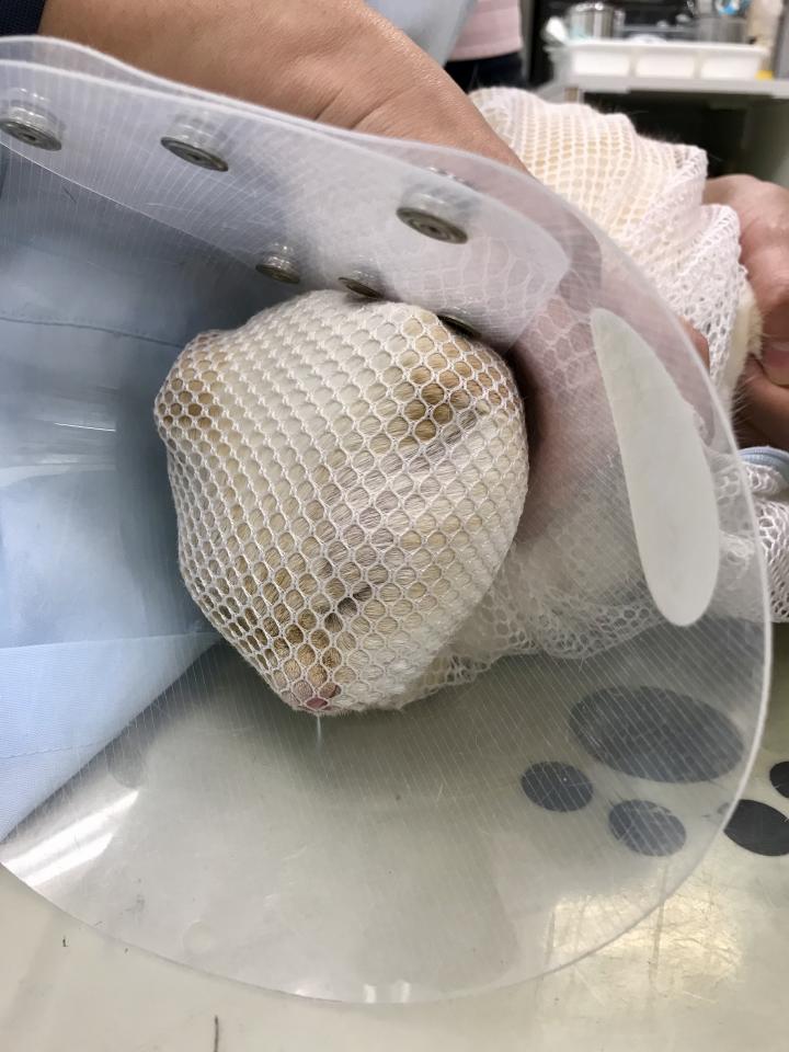 背中からお尻にかけて毛玉があって、念のためにチラ見してもらいました